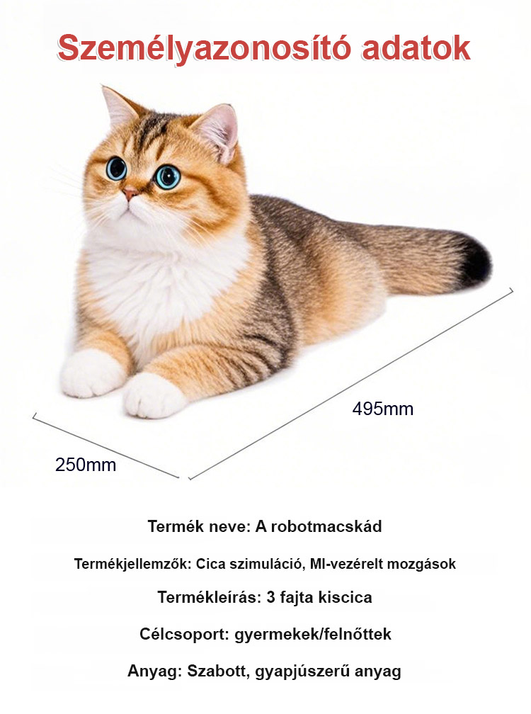Kölyökmacska szimuláció rövid plüss baba