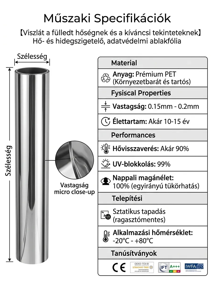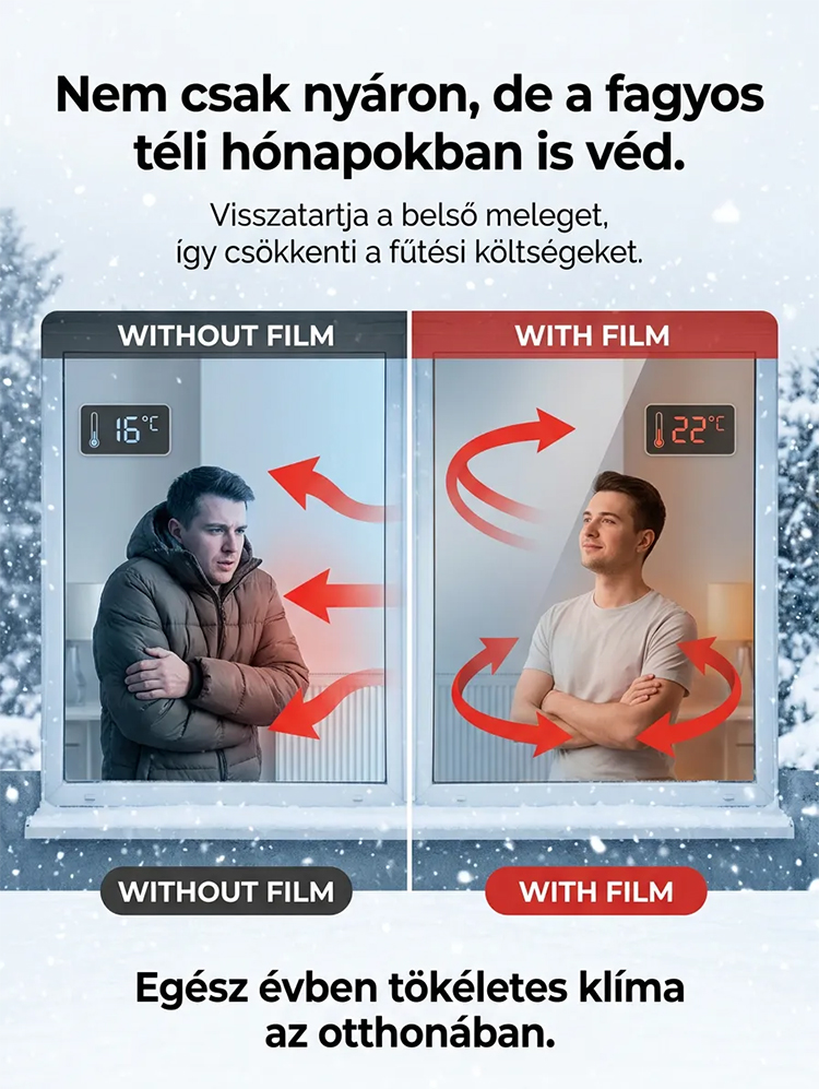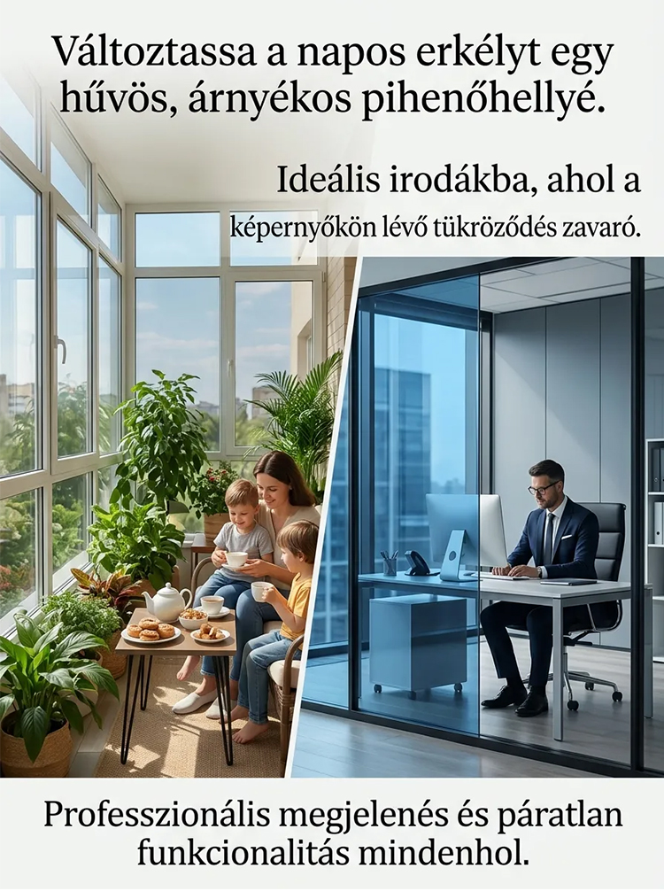 Hőszigetelő és betekintésgátló ablakfólia | UV-szűrő hővisszaverő fólia | Privát szféra védelem és energiamegtakarítás